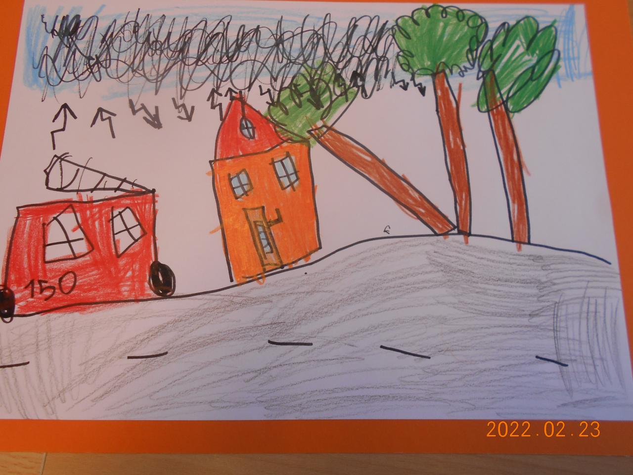 Obrázky dětí, které posíláme do hasičské soutěže 2022. Téma : "Živelné katastrofy- náročný úkol pro hasiče".